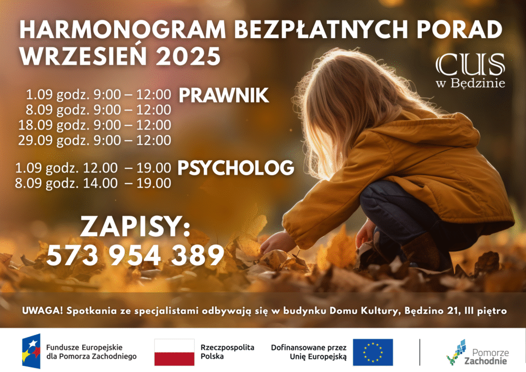Zadanie realizowane w ramach projektu „Centrum Usług Społecznych – nowym miejscem rozwoju i integracji usług społecznych” dofinansowanego ze środków Europejskiego Funduszu Społecznego Plus w ramach FEPZ 2021-2027, Priorytet 6 Fundusze Europejskie na rzecz aktywnego Pomorza Zachodniego.